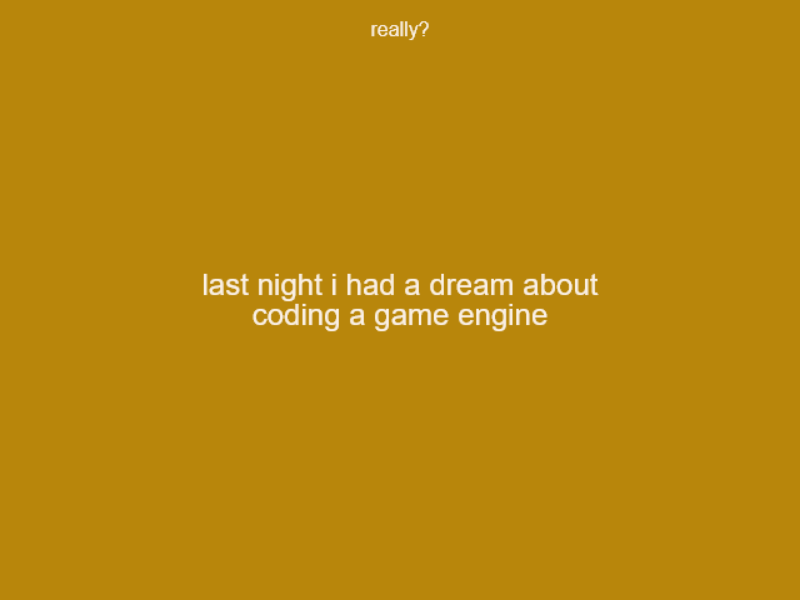 This engine is so evocative with just the right amount of arbitrary constraints that really make it a dreamlike experience.